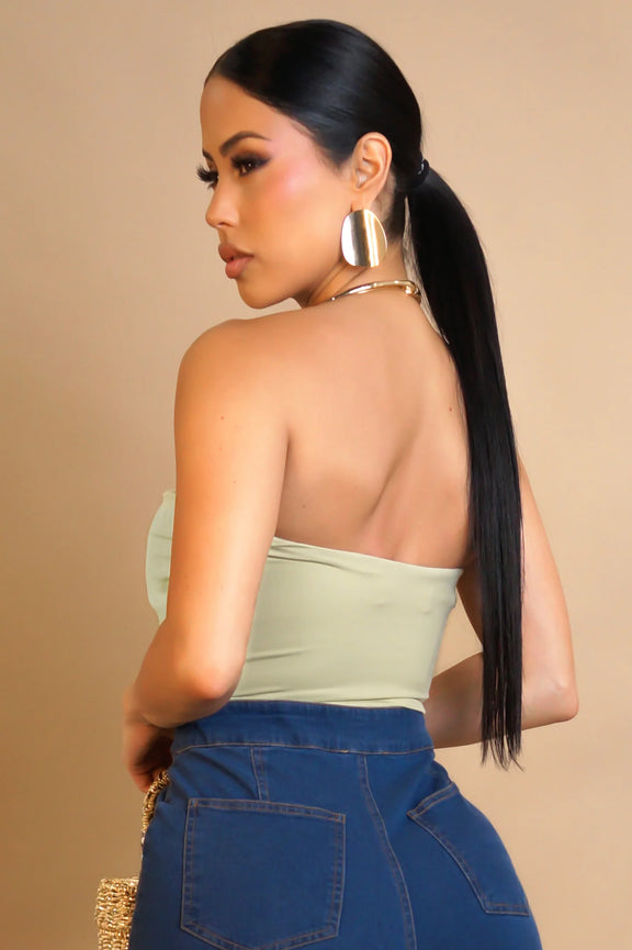 Verde Luxe is where soft meets statement. This sage green bodysuit hugs in all the right places with a flattering, minimalist silhouette, while a gold brooch detail adds a luxe touch of shine. Perfect for dressing up or keeping it effortlessly chic — this piece is made to stand out with subtle sophistication.
