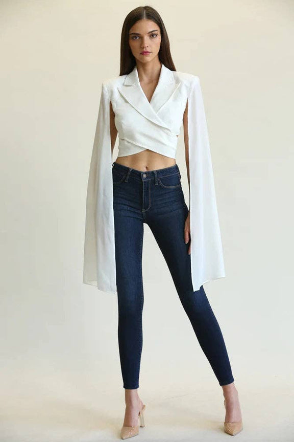 Criss-Cross Front Cropped Top With Cape Sleeves