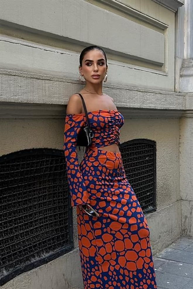 This bold blue and orange animal print maxi dress brings heat with every step — flowy, fierce, and effortlessly luxe. Perfect for turning heads day or night.