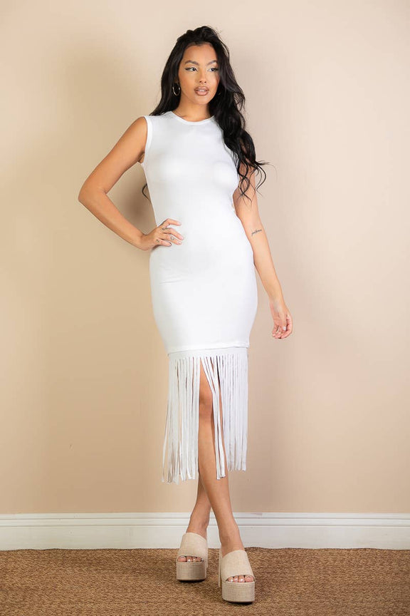 Sleeveless Fringe Midi Dress