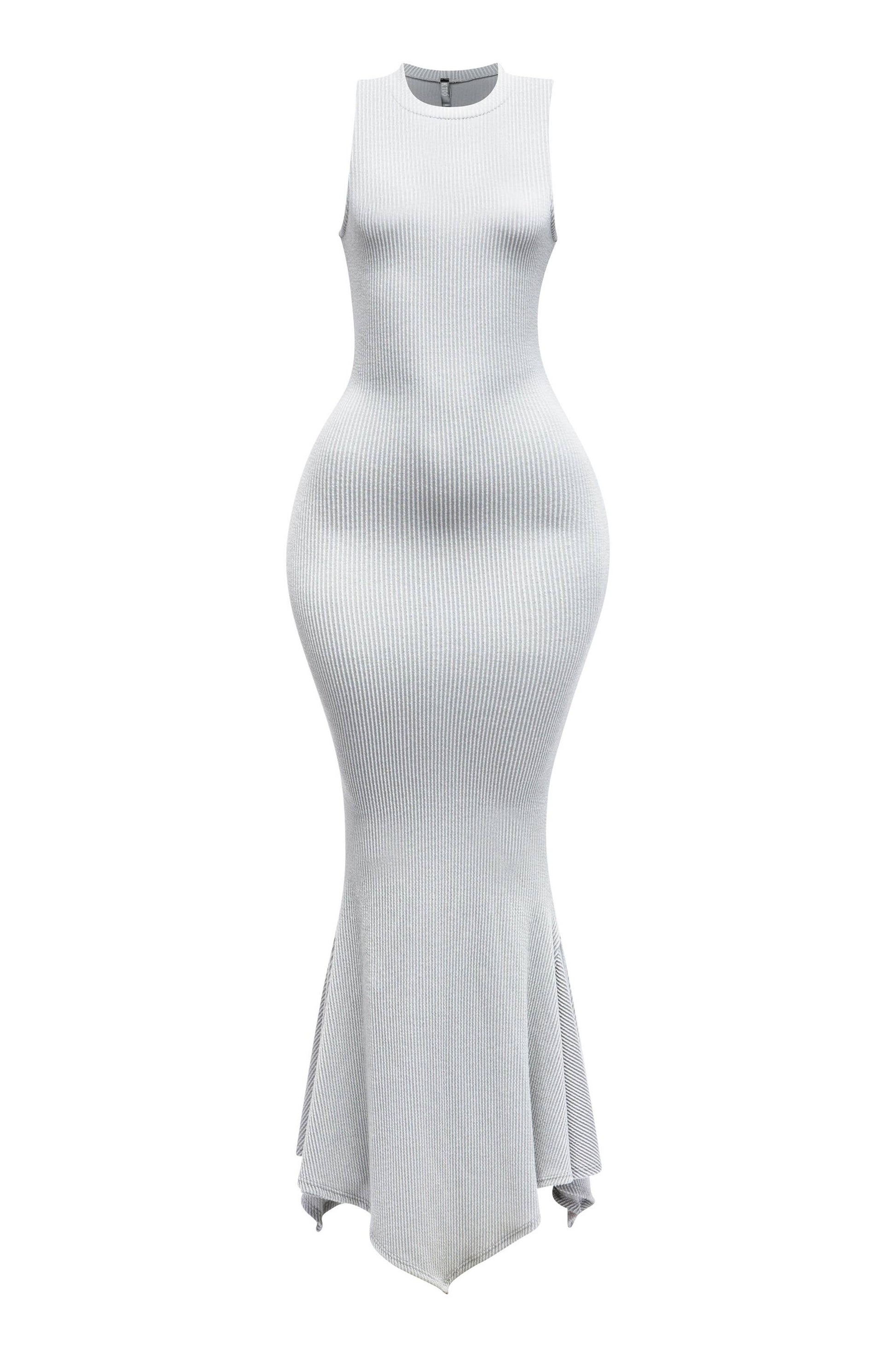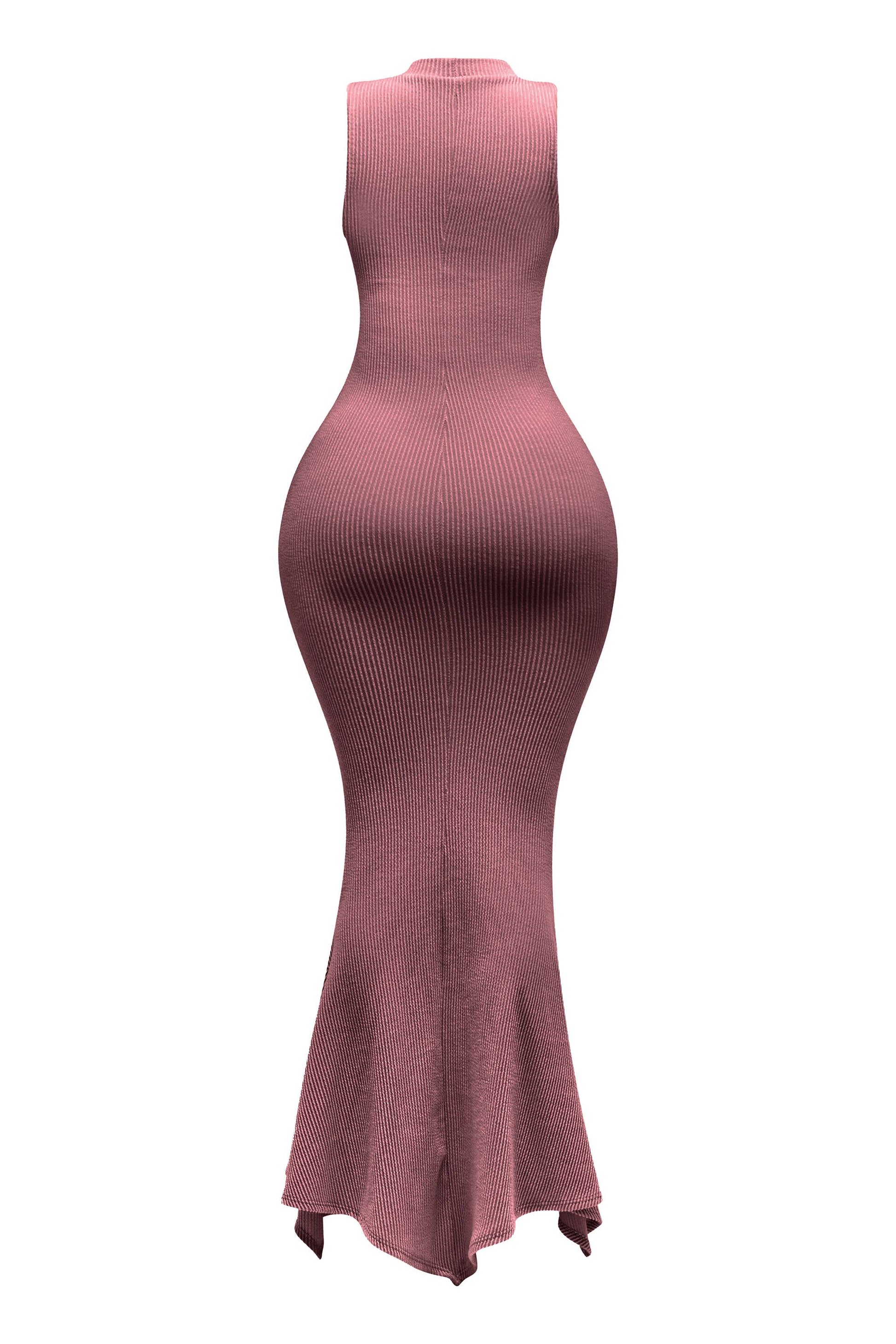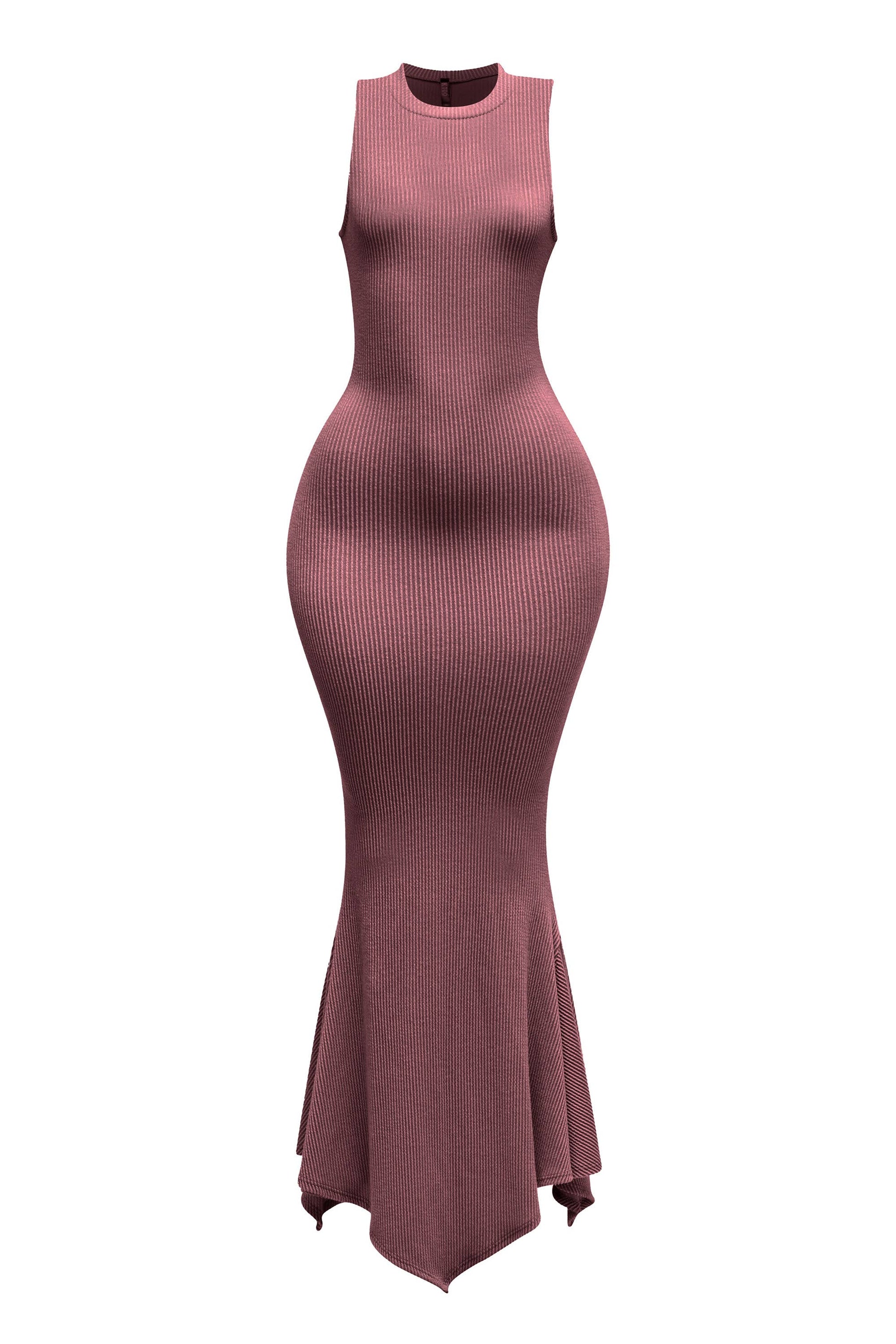 Round neck Sleeveless Mermaid maxi dress Ribbed fabric Imported